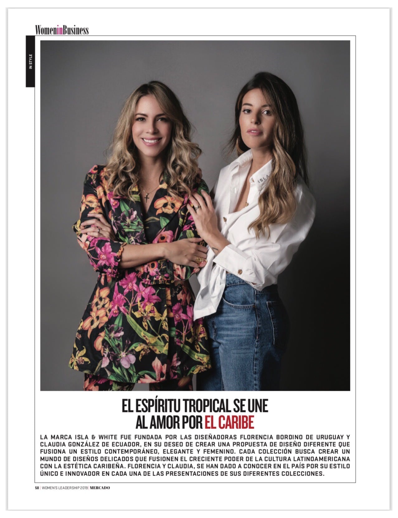 La marca Isla & White fundada por las diseñadora Florencia Bordino de Uruguay y Claudia Gonzalez de Ecuador, es un deseo de crear una propuesta de diseño diferente que fusiona un estilo contemporáneo, elegante y femenino.